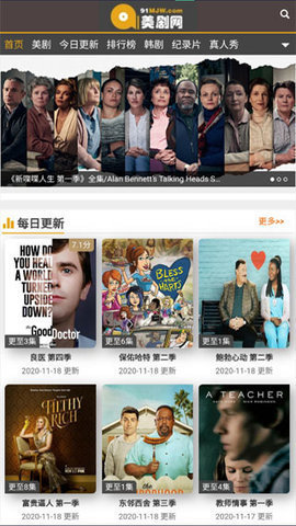 1、下载并安装91美剧手机客户端,打开软件后,用户将看到简洁的首页布局,便于快速浏览。