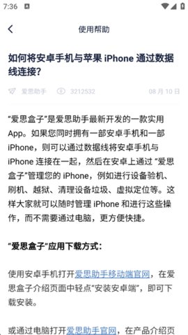 1、安卓手机可以作为电脑连接苹果设备,用户可随时随地通过安装爱思极速版来管理苹果设备,操作便捷。