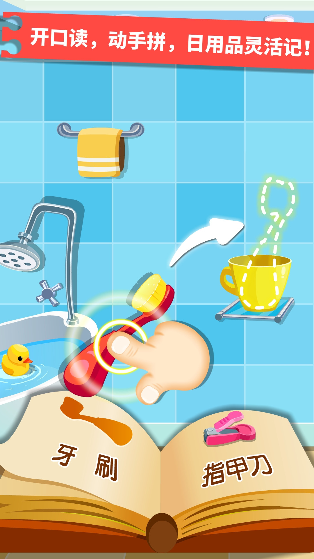2、拼图认知游戏:通过拼图游戏,宝宝可以将不同的日用品放入对应的位置,学习形状和功能。