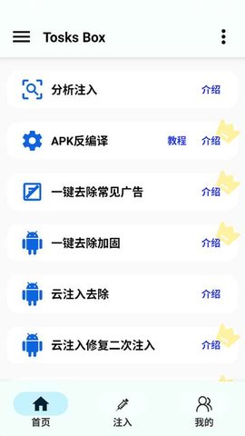 Tosks Box是一款非常实用的工具软件,特别适合那些对APK修改有需求的朋友功能涵盖了APK参数和内容的修改,能帮助你在手机上轻松进行逆向工程。无论你是开发者还是技术爱好者,都能让你在掌上就能探索软件的内部奥秘,简直是玩机必备的利器。