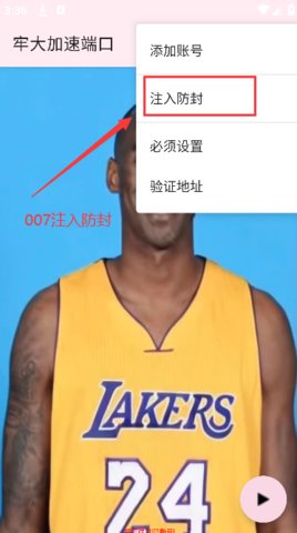 3、登录成功后,返回到主界面,找到添加注入防封的选项,点击进入。