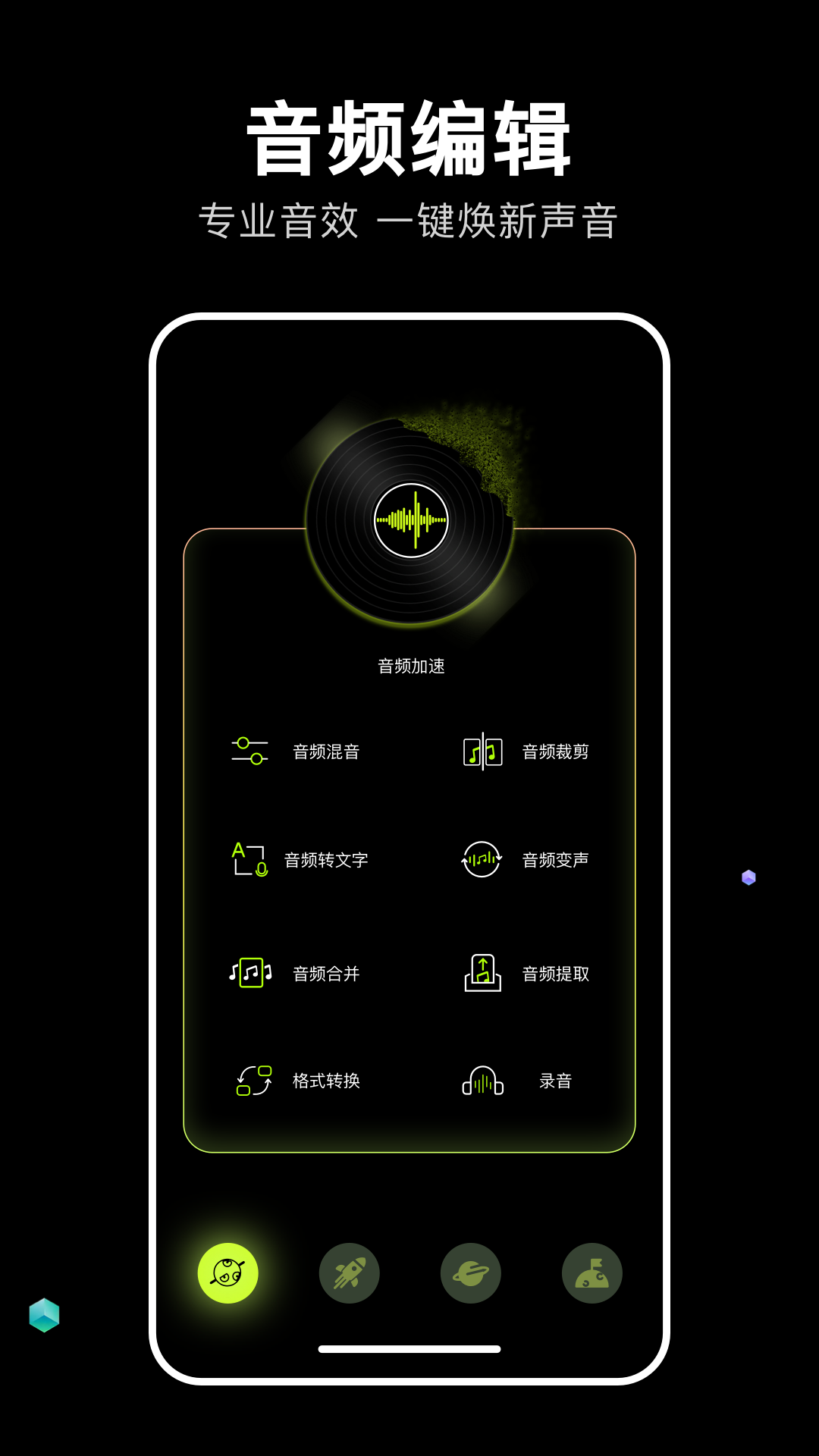 2、多种音频处理功能,包括混音、裁剪、转文字、变声等,满足各种创作需求。