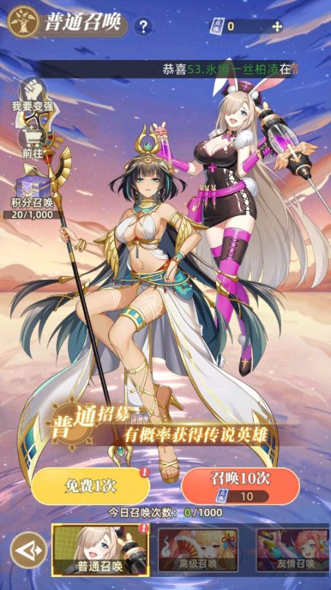 5、【万抽招募】免费领10000抽,每天登录即送100抽