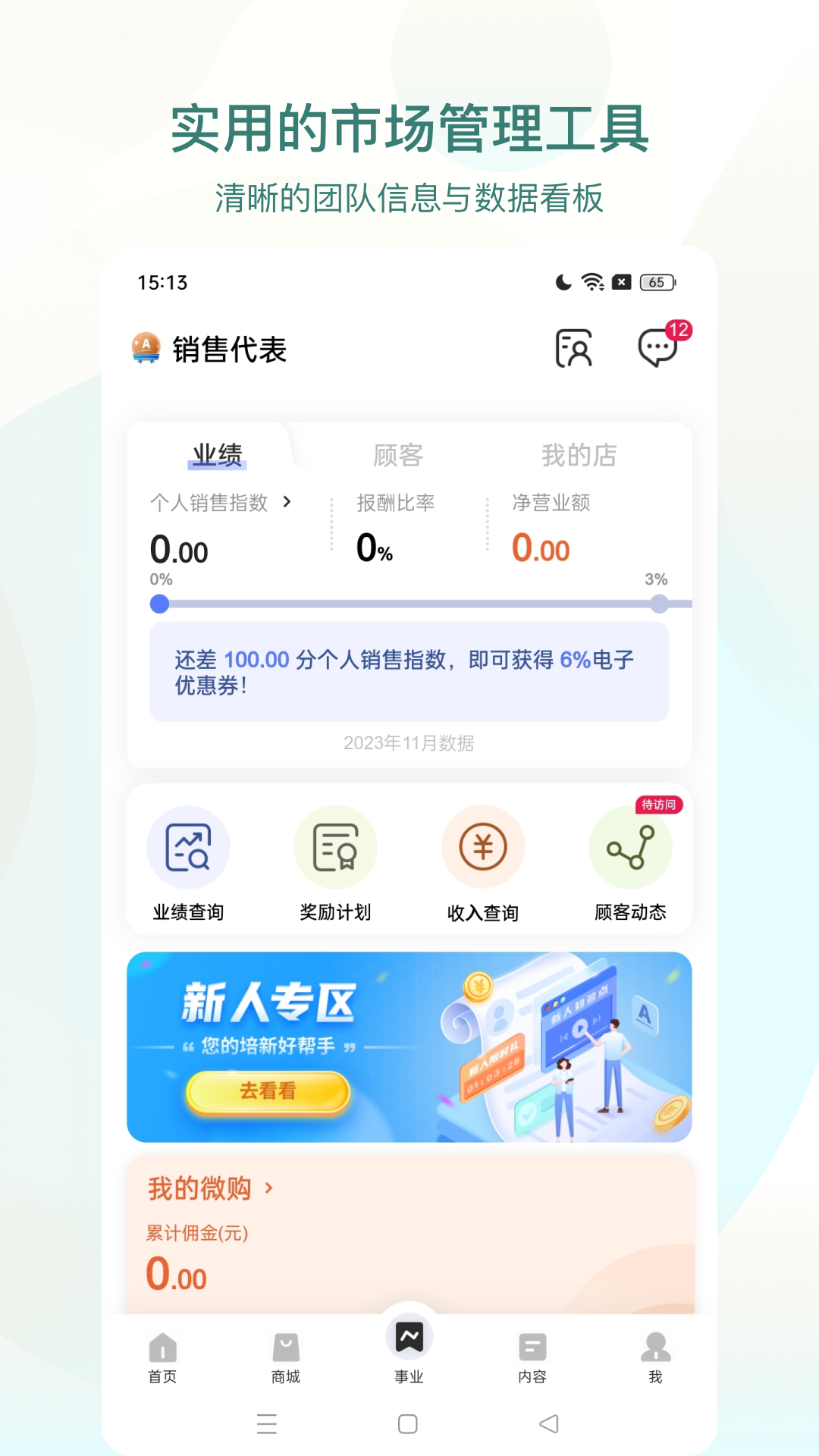 1、实时业绩看板清晰展示个人与团队的销售数据、净营业额及点数,便于随时掌握月度目标完成进度。
