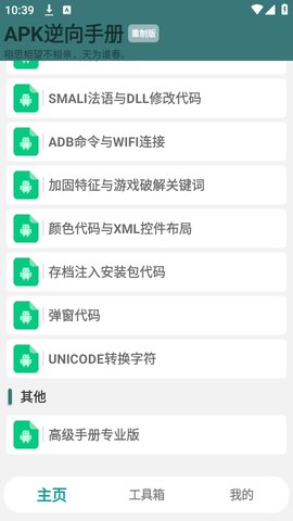 1、用户需要下载并安装APK逆向手册重制版,打开后进入主界面。