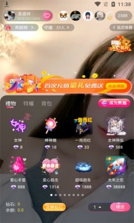 购买虚拟礼物,通过打赏的方式表达对心仪主播的喜爱与支持,增加互动乐趣。