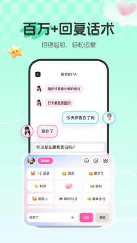 整合了丰富的恋爱话术和社交技巧,在各种社交场景中得到专业的指导。无论是初次约会还是日常聊天,敲心动都能提供及时的建议,帮助你更好地表达自己,增进与他人的联系。