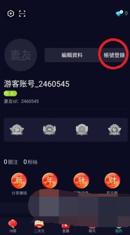 3、在我的页面的右上角,你会看到一个登录按钮,点击它。