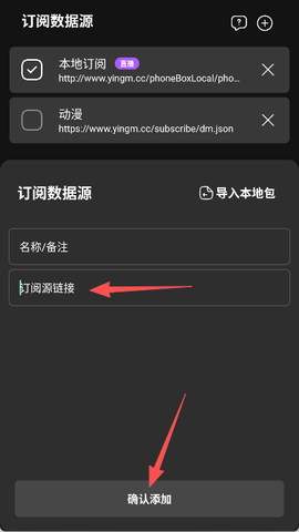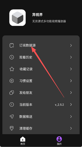 3、在个人页面中,找到订阅数据源选项,点击进入,这里可以添加您喜欢的播放源。