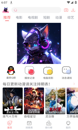 1、下载并安装夜猫追剧软件,打开软件后,你会看到首页的热门推荐和分类。