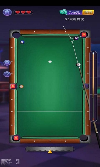 1、游戏的物理引擎表现极为出色,完美地模拟了球体之间的各种物理现象,提供了真实的击球体验,让玩家仿佛置身于一场激烈的台球比赛中。