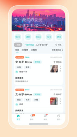 红橘之恋相亲平台是一款为单身人士提供真诚交友和相亲服务的应用,在这里轻松找到志同道合的朋友,借助多种交流方式,加深彼此的了解,逐步建立真挚的情感。平台特别注重用户信息的真实性与安全性,采用严格的身份认证和资料审核机制,确保每位用户的信息都真实可靠。红橘之恋不仅提供智能匹配和情感指导,还定期举办线下活动,让相亲变得更加轻松自然。
