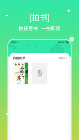2、点击拍书识字后,应用会提示用户使用摄像头对准书页,确保文字清晰可见,按下拍摄按钮。