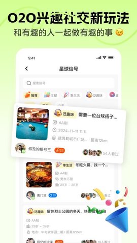 2、社交需求发布:发布组局需求,系统会将信息同步推送给匹配的用户,促进线下活动的开展。