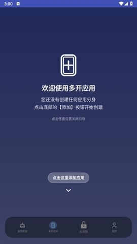 2、进入软件后,用户会看到主界面,点击添加应用按钮,选择需要多开的应用。