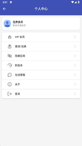 1、用户需要在手机上下载安装无界多开应用,完成后打开软件。