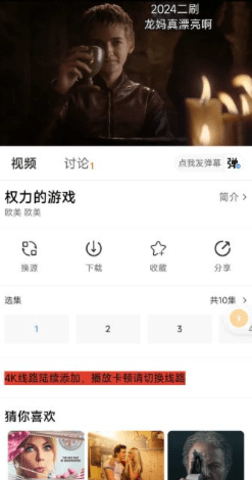 如果用户希望在没有网络的情况下观看某些内容,可以找到支持下载的剧集,点击下载按钮,系统会将其保存到本地。