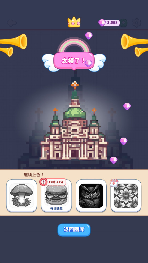 2、采用先进的图像处理技术,玩家完成的画作可以导出为高清图片,方便分享至社交媒体。