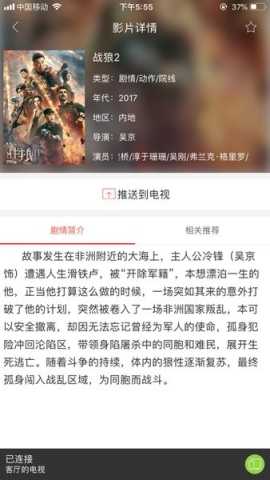 3、借助于点播互动功能,将手机上的影视内容投射到电视屏幕上,享受更大的视觉冲击。