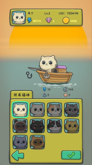 2、猫咪船员养成机制让每只猫咪拥有专属垂钓天赋,戴着船长帽的橘猫能在暴风雨天气提升35%稀有鱼发现率。