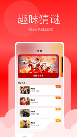 4、若用户想参与趣味互动,可以在应用的功能菜单中找到相关选项,点击进入后即可开始猜谜或看图猜剧名的游戏。