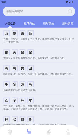 5、用户如需查看成语和典故,可以进入相关板块,浏览详细的热搜成语和推荐典故,丰富自己的知识。