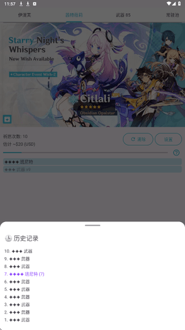 3、内置的统计功能能够清晰地显示玩家的抽卡结果,让每一次的抽卡都充满期待。