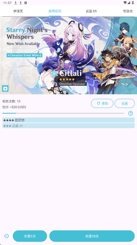 6、玩家可以根据自己的喜好自定义抽卡次数,模拟多次抽卡体验,尽情享受每一次的惊喜。