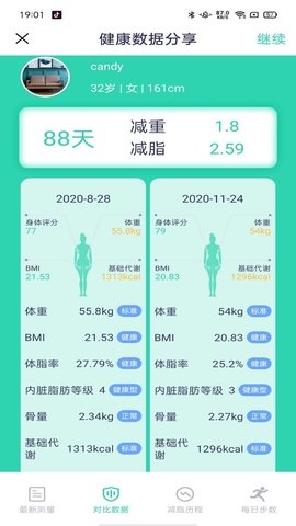 3、软件允许用户对不同日期的指标进行对比,帮助用户及时发现身体变化,调整健康计划。