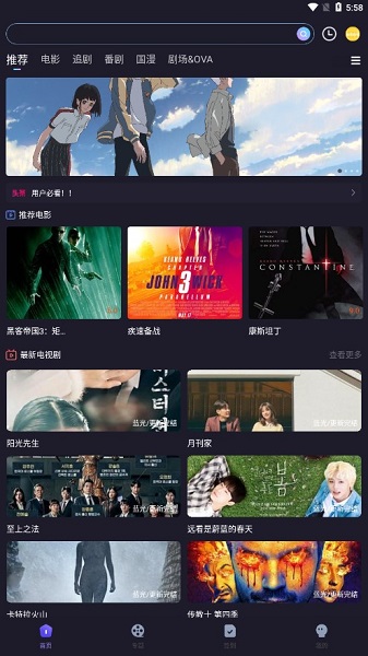 1、打开嗯哩嗯哩应用后,用户会看到一个简洁的首页,上面展示了最新的影视资源,直接浏览。