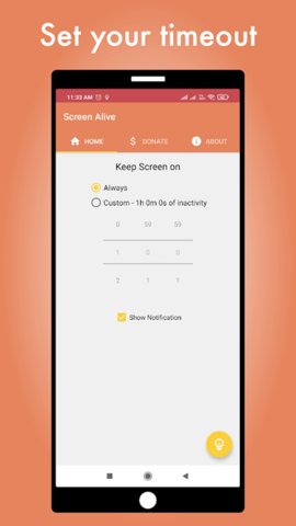 2、自定义超时设置允许调整屏幕关闭时间,支持从数分钟到永久开启的多种时间选项。