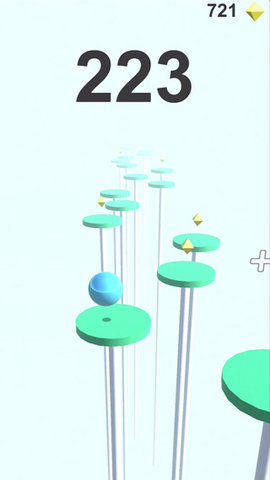 1、游戏开始后,手指轻触并按住屏幕,此时小球会开始向上弹跳。通过手指在屏幕上的左右滑动,可以控制小球在空中的水平移动方向,目标是让其落在前方的色彩板上。