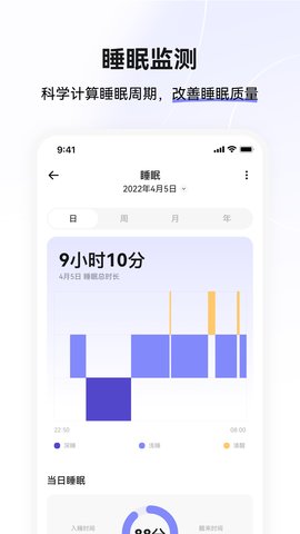 3、应用提供科学的睡眠质量评估,能够监测不同阶段的睡眠情况,帮助用户改善睡眠质量,享受更好的休息。