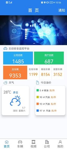 5、实时视频监控可以通过监控选项进入,点击查看视频,即可随时查看车辆周边的实时画面。