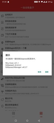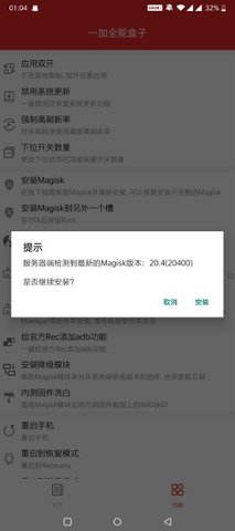 7、在安装过程中,系统会提示用户安装magisk(面具),用户需要允许该操作,确保root成功。