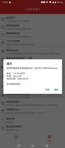8、完成后,手机会重启,打开一加全能工具箱,获取root权限,随后再打开面具应用,等待5秒后再次重启手机,整个过程便完成了。