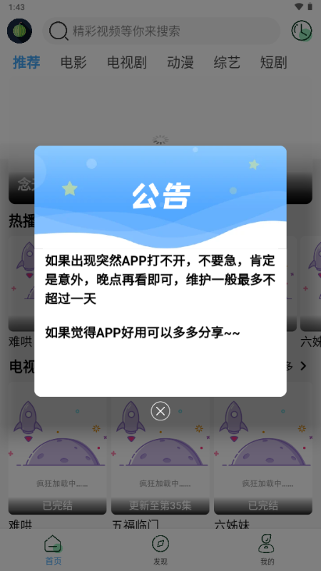 1、打开小樱桃影视后,首先可以看到丰富的影视剧栏目,可上下滑动选择自己喜欢的类型。