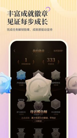 3、成就徽章系统通过持续记忆单词解锁不同的徽章,直观展现你的学习进步,激励你不断前行。