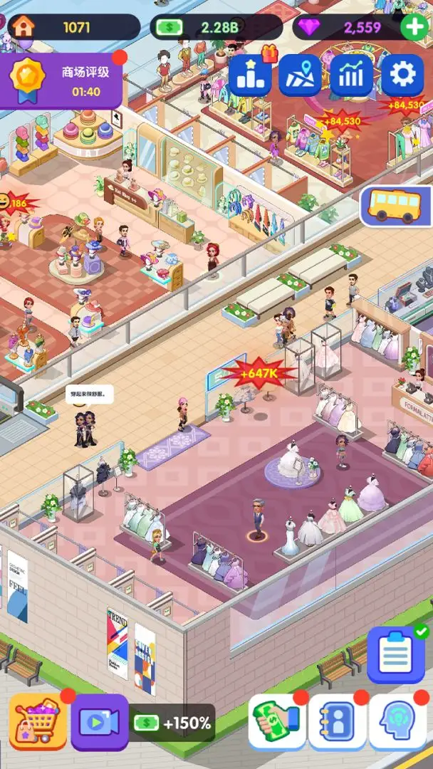 4、游戏后期目标指向打造一个包罗万象的时尚帝国,让你的商业街成为城市中不可或缺的潮流地标。