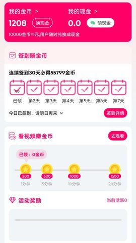 5、完成每日签到后,领取专属福利,观看任务也能够帮助用户积累现金收益。