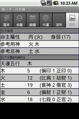 3、软件展示的信息不仅限于八字本身,还包括五行的相生相克关系,帮助用户更好地理解自己的命理结构。