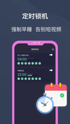 2、定时锁机功能让你不再因沉迷手机而熬夜,帮助你合理规划时间,提升工作学习效率。