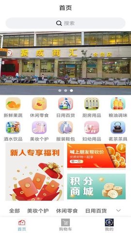 3、如果想浏览商品,可以点击下方的商品分类专区,生鲜果蔬或家居百货,轻松找到所需商品。