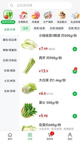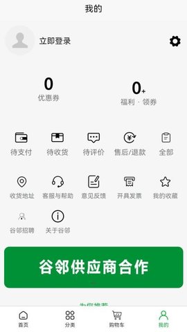 1、打开谷邻超市APP后,用户会看到各类商品的分类,选择一个感兴趣的品类,食品或日用品。