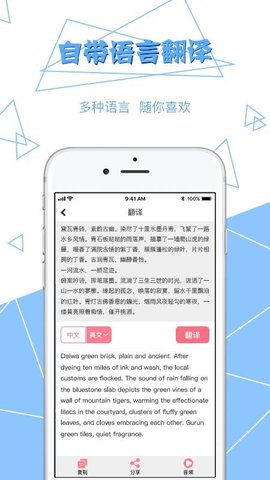 2、语言翻译:识别完成后,选择目标语言进行翻译,方便在不同语言环境下进行交流。