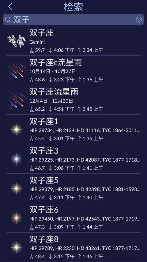 2、流星雨追踪:查看特定流星雨的活动周期和最佳观测时间,确保不错过精彩瞬间。
