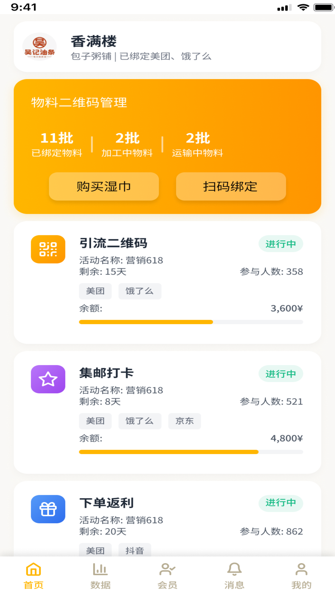 2、商家将各大外卖平台的账号与省易点商家版进行绑定,就可以实现数据的自动整合,方便后续管理。