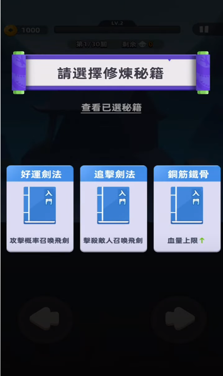 3、击败敌人后,注意选择秘籍。每个秘籍都有独特的效果,可以帮助你在后续关卡中应对更强大的敌人,选择合适的秘籍至关重要。
