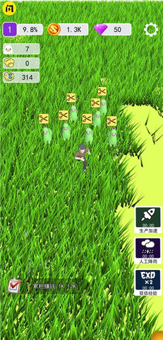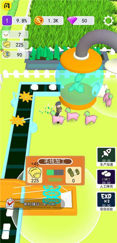 2、通过点击草地,你可以为羊驼提供食物,羊驼的快乐值会影响它们的生产效率,保持它们的快乐是经营的关键。