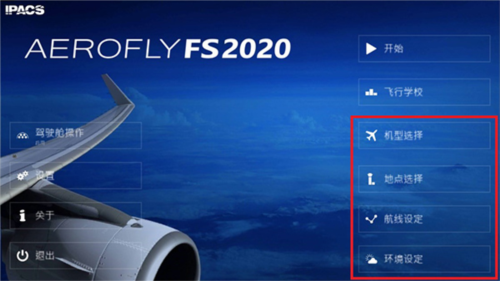 3.飞机参数设置,在驾驶飞机之前,我们可提前设定飞机型号、飞行地点、航线设定以及环境等各项游戏参数。